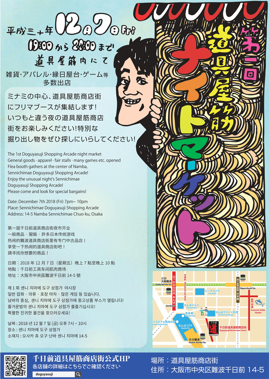 千日前道具屋筋商店街では12月7日(日)に新イベント『道具屋筋ナイトマーケット』を初開催致します。