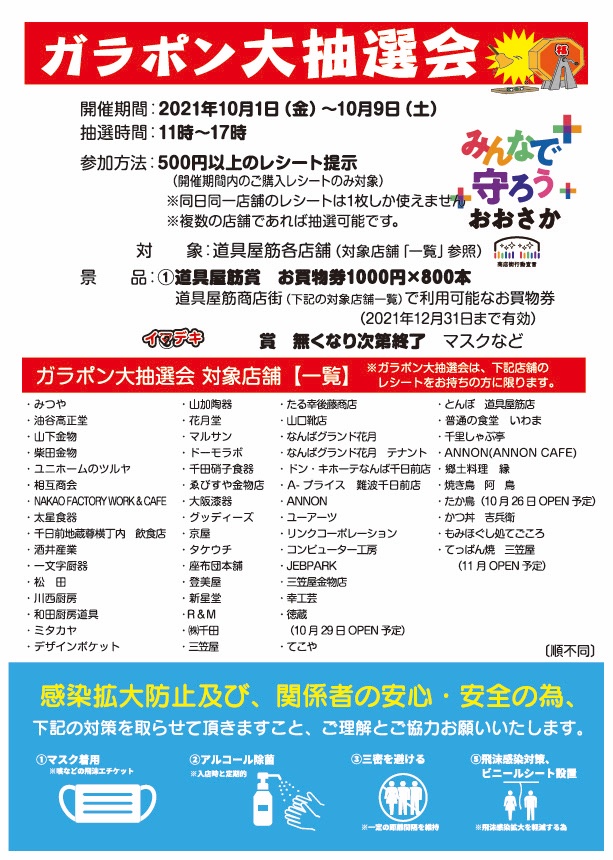 【イマデキ】「今、できること企画」道具屋筋ガラポン大抽選会を開催致します。