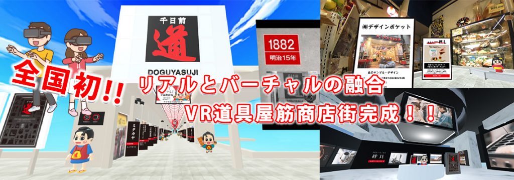 この度千日前道具屋筋商店街では、千日前道具屋筋商店街振興組合では、商店街のPR、集客、認知度の向上を図ることを目的に、NTTコノキューが提供する仮想空間プラットフォーム「DOOR」を使ったコミュニティ空間として「VR道具屋筋商店街」を立ち上げました。