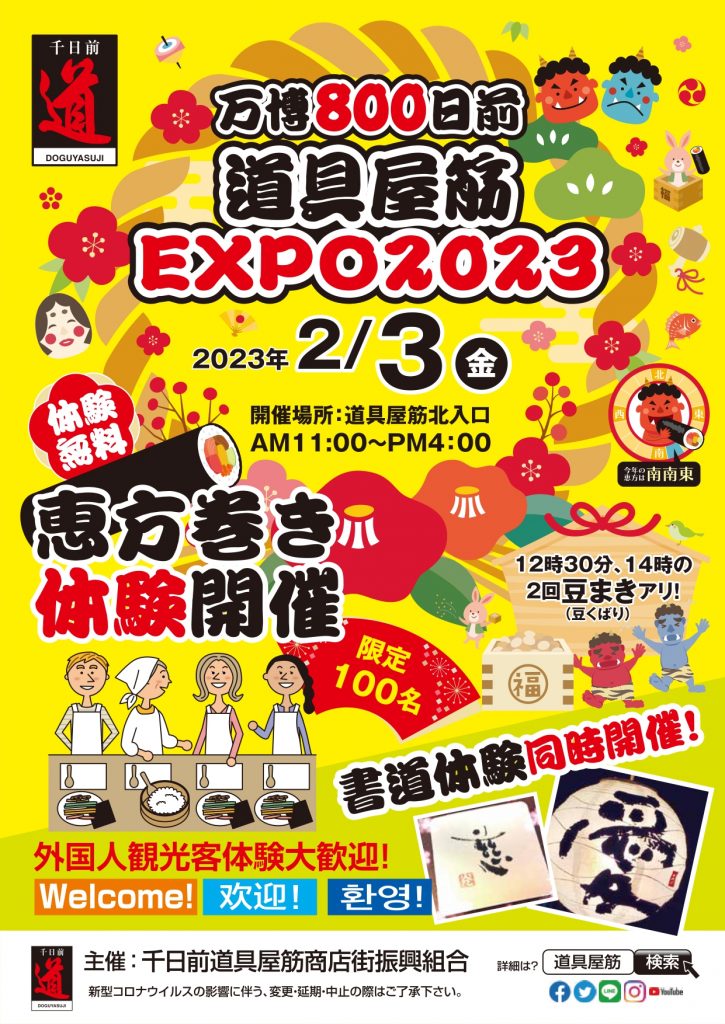 是非とも道具屋筋EXPOで作った恵方巻を食べて、EXPO開催に向けて一緒に福をたくさん呼び込みましょう!